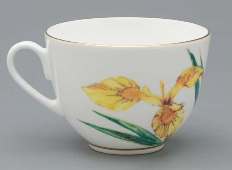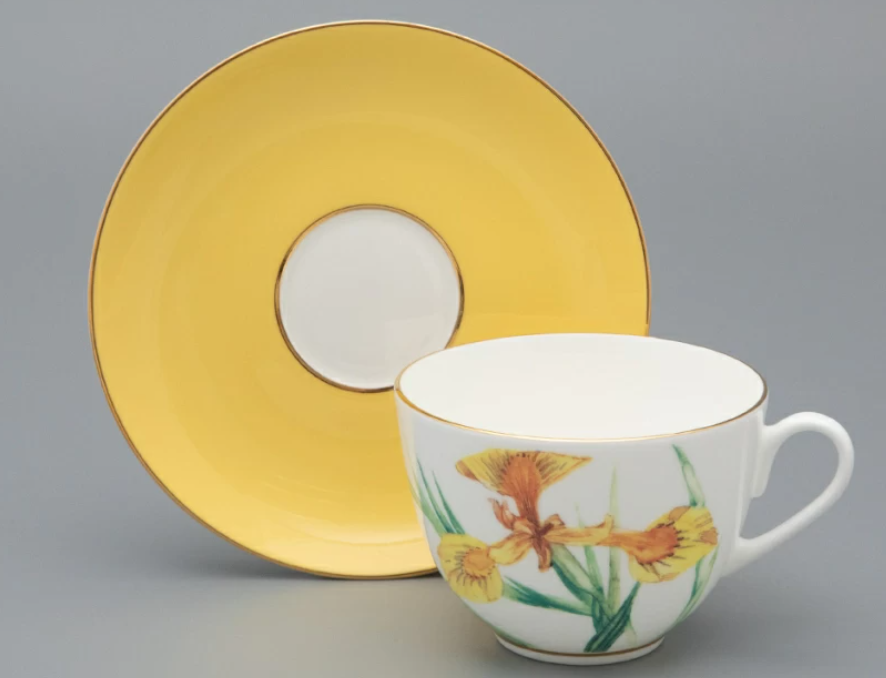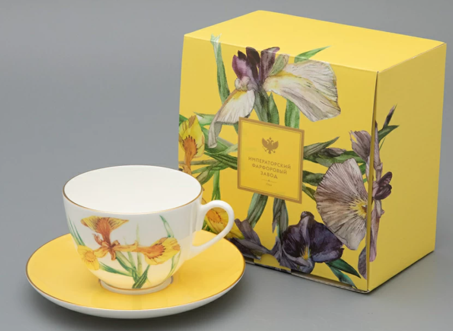 Чайная пара выполнена в рамках изысканной серии L'Art des Fleurs («Искусство цветов») от художника Татьяны Чапургиной. В ней автор переосмысливает традиционное восприятие цветочных мотивов на фарфоре, возводя L’Art des Fleurs до уровня подлинного искусства. На каждой чайной паре автор изображает один из своих любимых цветов – цветок ириса.Миниатюрный ирис «Лесной свет» отличается от своих «собратьев» мягким желтым оттенком лепестков. Татьяна Чапургина мастерски передает игру света, используя плавные переходы от бледно-лимонного тона к более насыщенным медовым и янтарным полутонам. Эффект солнечного свечения подчеркивает желтый цвет блюдца. Оно не только гармонирует с изображением на чашке, но и придает костяному фарфору дополнительную воздушность. Завершающим штрихом является подарочная упаковка, созданная специально для этой серии.